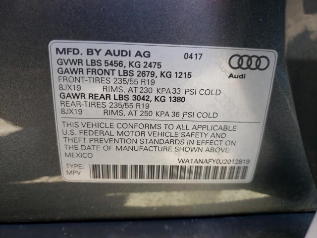 This 2018 Audi Q5 (Grey) comes from a major insurance auction in the USA or Canada. All information on this page is linked to the vehicle’s VIN (WA1ANAFY0J2012819), which helps confirm where the car was listed and what condition it was in at the time of sale.