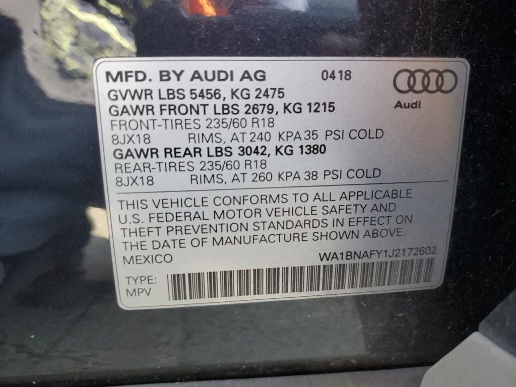 VIN: WA1BNAFY1J2172602