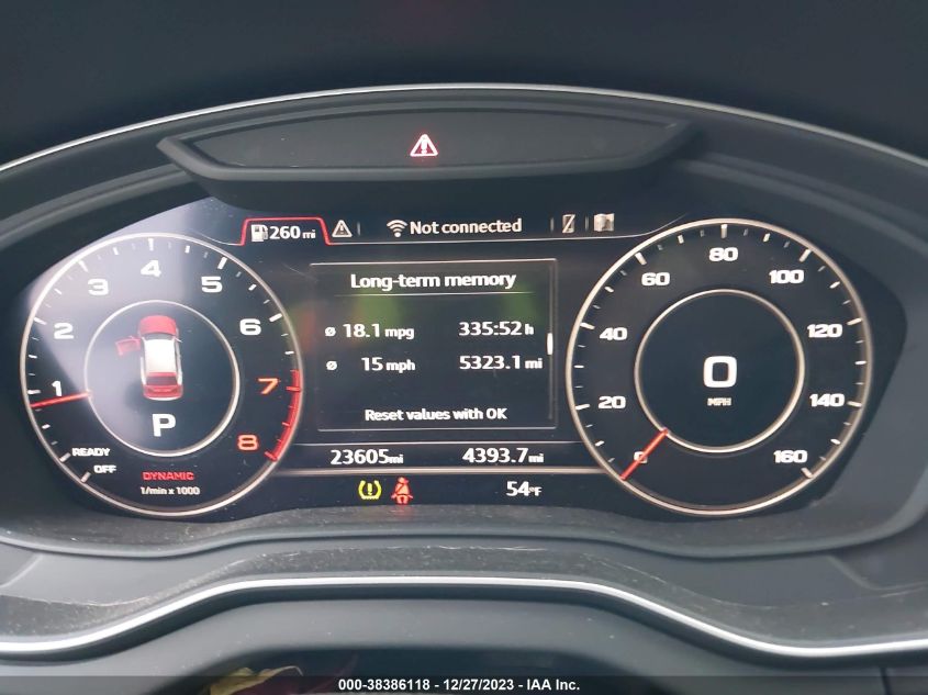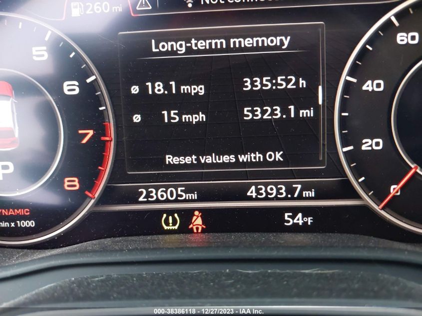 This 2018 Audi Q5 (Grey) is equipped with an engine designed to balance performance and efficiency. According to the auction listing, the vehicle had 23,605 miles at the time of sale.