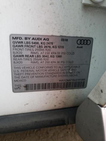 This 2018 AUDI Q5 (WHITE) comes from a major insurance auction in the USA or Canada. All information on this page is linked to the vehicle’s VIN (WA1CNAFY8J2151055), which helps confirm where the car was listed and what condition it was in at the time of sale.