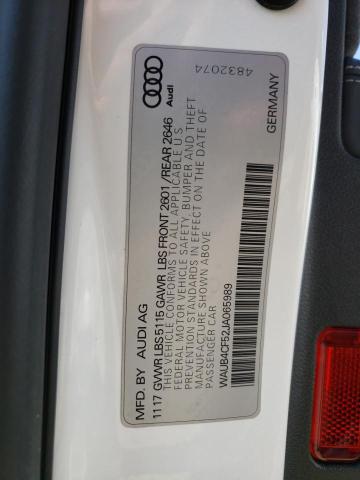 This 2018 Audi S5 (White) comes from a major insurance auction in the USA or Canada. All information on this page is linked to the vehicle’s VIN (WAUB4CF52JA065989), which helps confirm where the car was listed and what condition it was in at the time of sale.