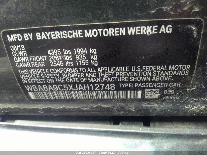 | VIN Number | WBA8A9C5XJAH12748 |