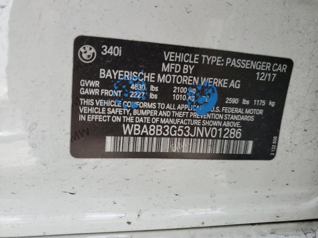 This 2018 BMW 3 Series (White) comes from a major insurance auction in the USA or Canada. All information on this page is linked to the vehicle’s VIN (WBA8B3G53JNV01286), which helps confirm where the car was listed and what condition it was in at the time of sale.