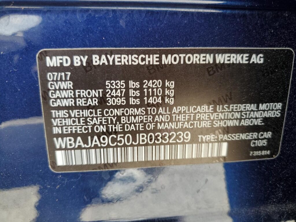 This 2018 BMW 5 Series (Blue) comes from a major insurance auction in the USA or Canada. All information on this page is linked to the vehicle’s VIN (WBAJA9C50JB033239), which helps confirm where the car was listed and what condition it was in at the time of sale.