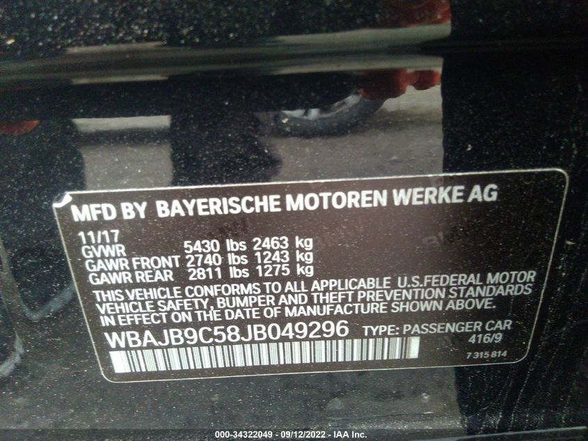 2018 BMW 5 SERIES – WBAJB9C58JB049296