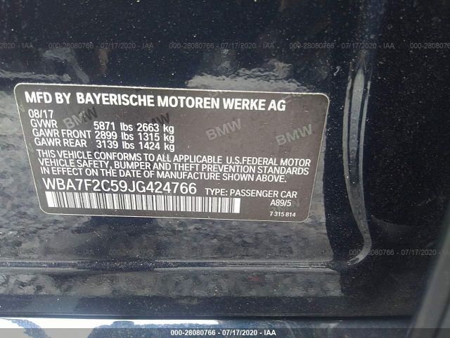 VIN NumberWBA7F2C59JG424766