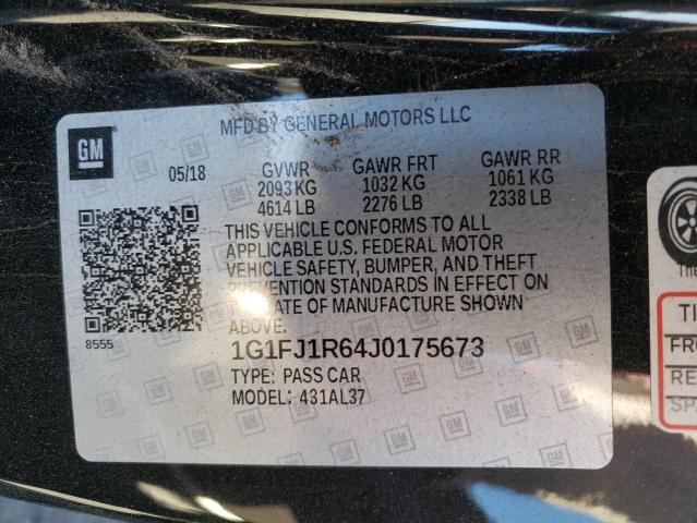 This 2018 Chevrolet Camaro (Black) comes from a major insurance auction in the USA or Canada. All information on this page is linked to the vehicle’s VIN (1G1FJ1R64J0175673), which helps confirm where the car was listed and what condition it was in at the time of sale.