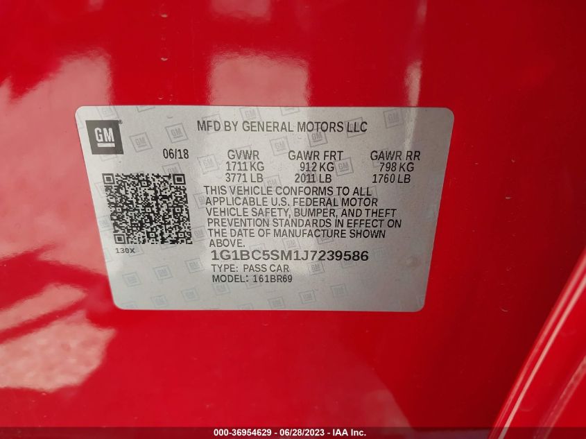 This 2018 Chevrolet Cruze (Red) comes from a major insurance auction in the USA or Canada. All information on this page is linked to the vehicle’s VIN (1G1BC5SM1J7239586), which helps confirm where the car was listed and what condition it was in at the time of sale.