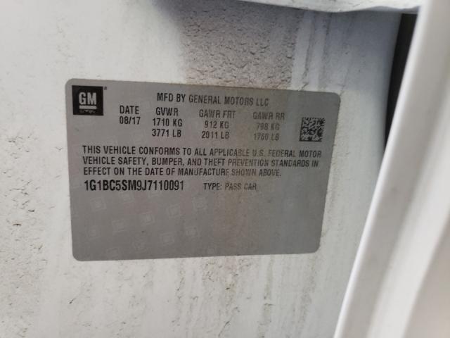This 2018 Chevrolet Cruze (White) comes from a major insurance auction in the USA or Canada. All information on this page is linked to the vehicle’s VIN (1G1BC5SM9J7110091), which helps confirm where the car was listed and what condition it was in at the time of sale.