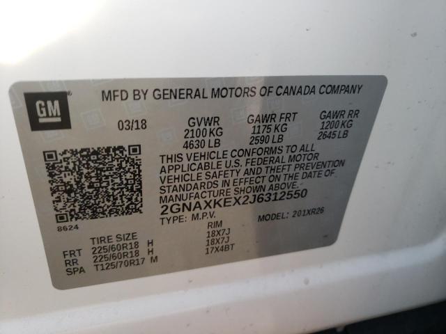 This 2018 Chevrolet Equinox (White) comes from a major insurance auction in the USA or Canada. All information on this page is linked to the vehicle’s VIN (2GNAXKEX2J6312550), which helps confirm where the car was listed and what condition it was in at the time of sale.