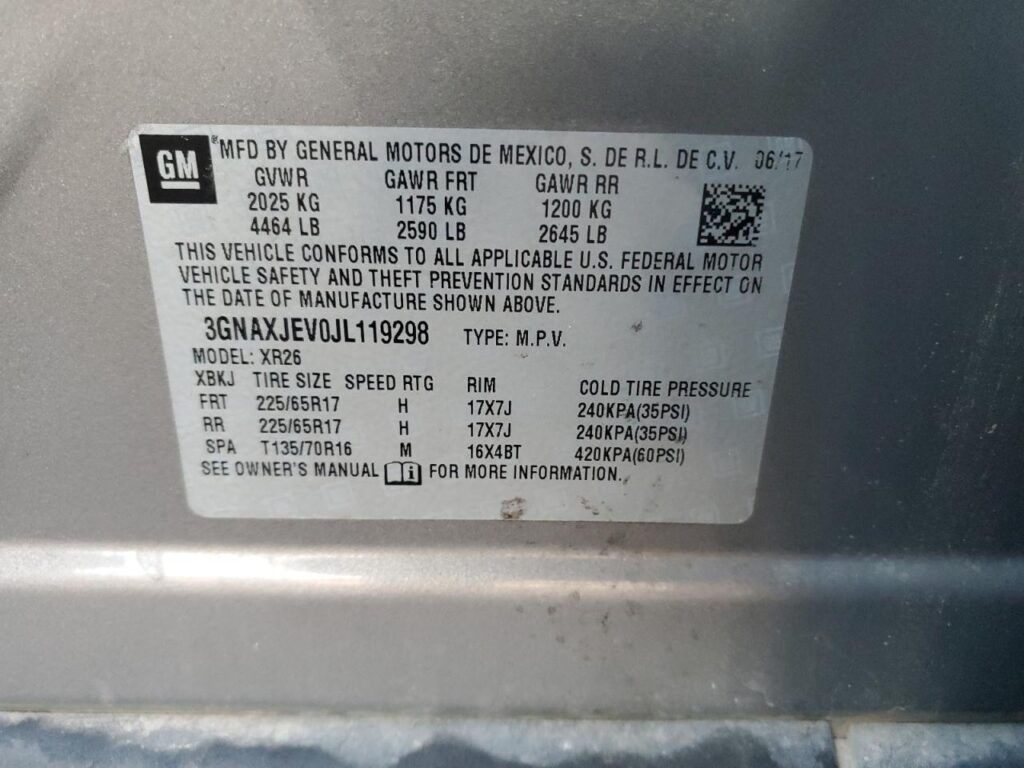 | VIN Number | 3GNAXJEV0JL119298 |