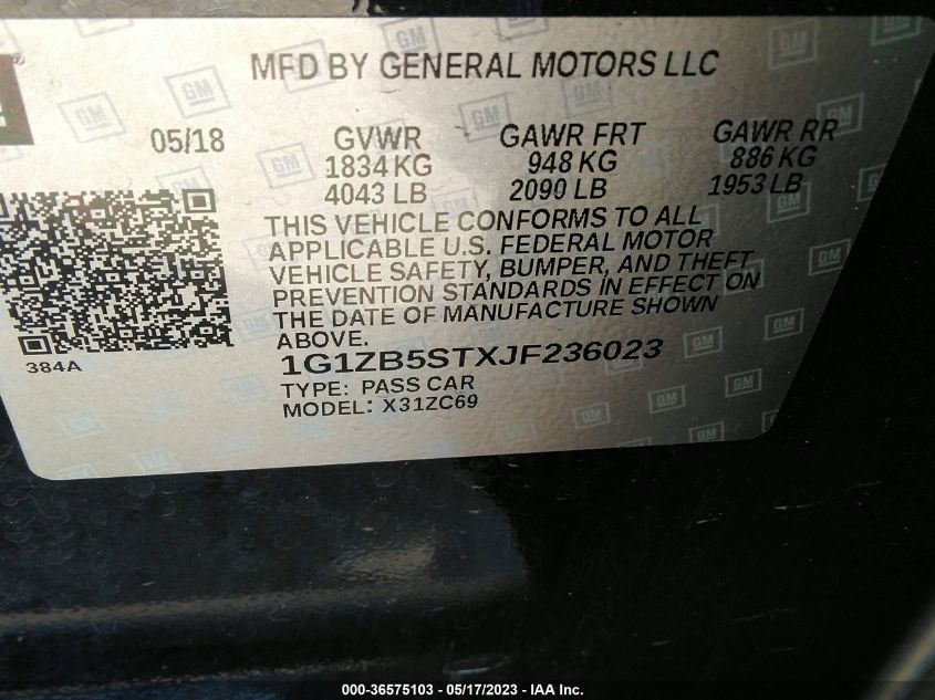 | VIN Number | 1G1ZB5STXJF236023 |