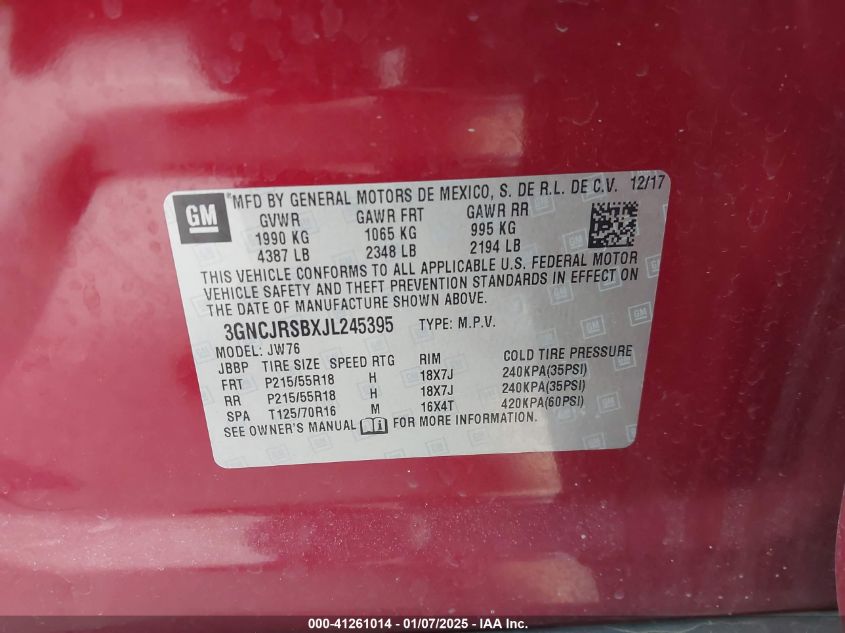 VIN: 3GNCJRSBXJL245395