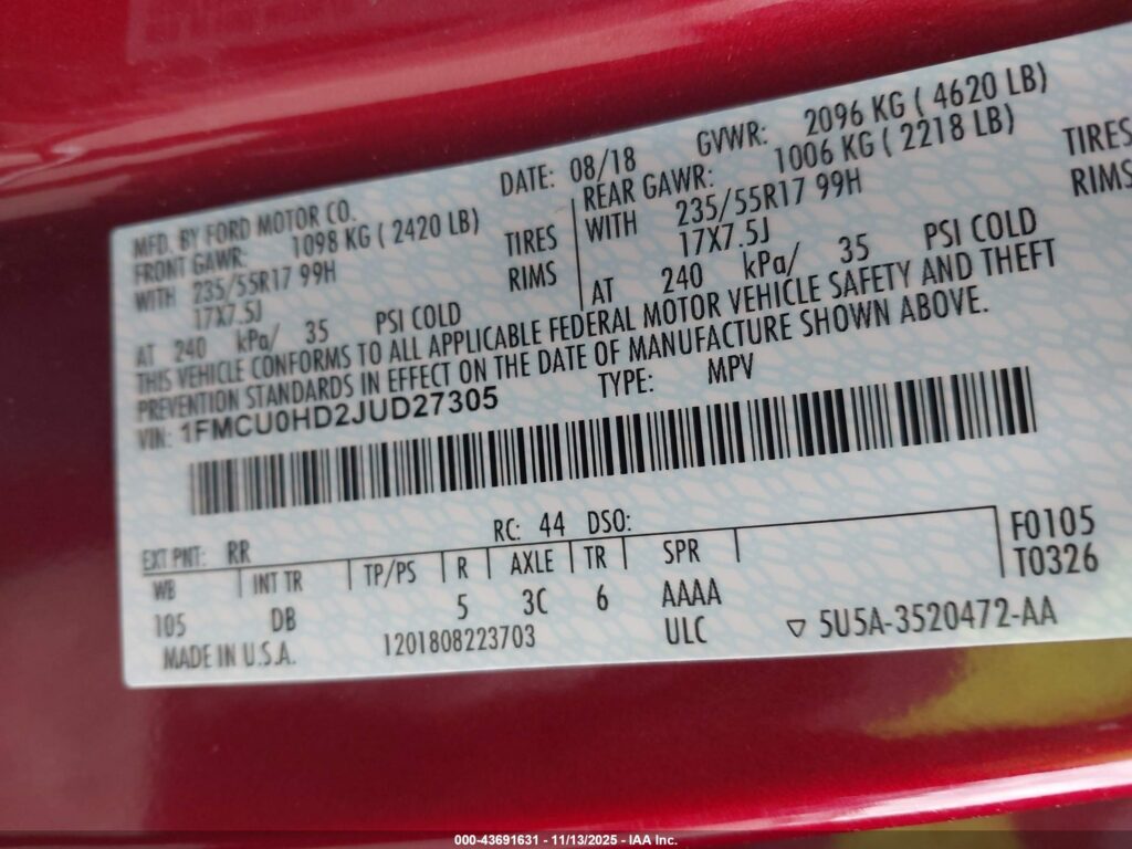 VIN: 1FMCU0HD2JUD27305