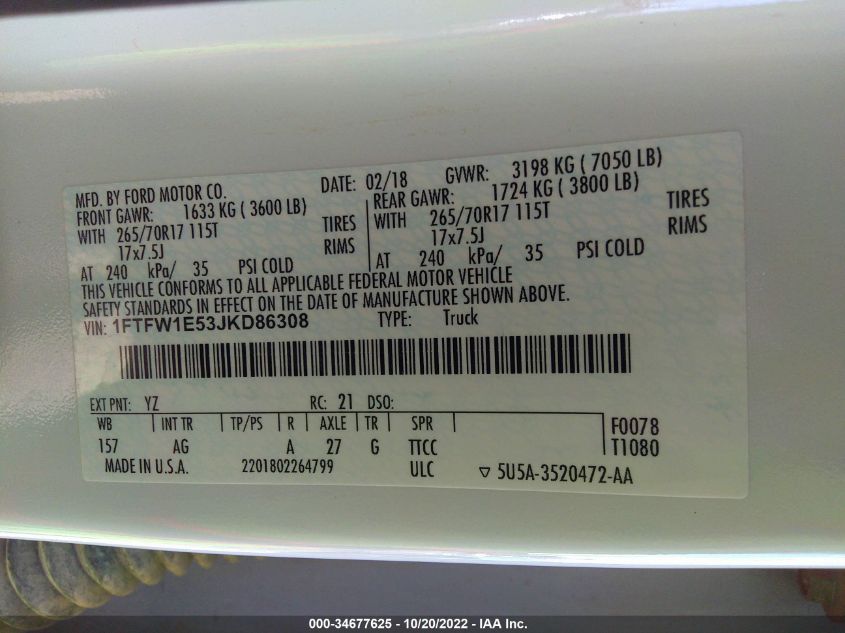 | VIN Number | 1FTFW1E53JKD86308 |