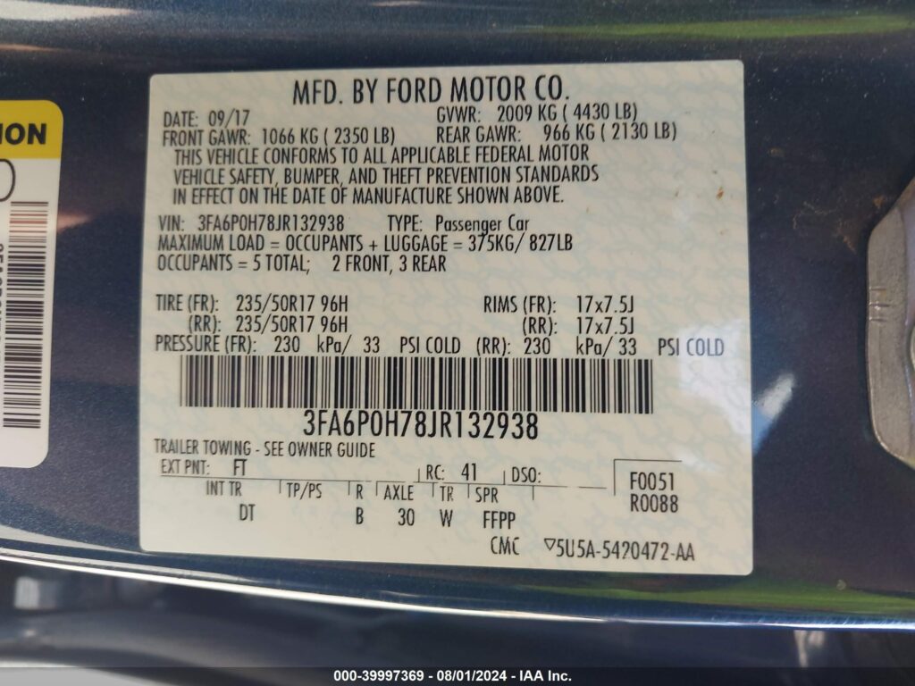 VIN Number3FA6P0H78JR132938