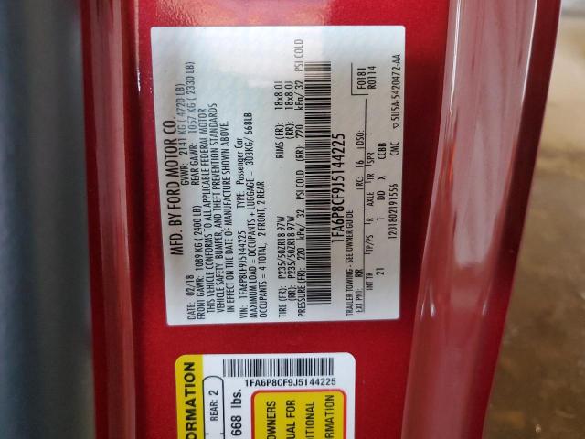 This 2018 Ford Mustang (Red) comes from a major insurance auction in the USA or Canada. All information on this page is linked to the vehicle’s VIN (1FA6P8CF9J5144225), which helps confirm where the car was listed and what condition it was in at the time of sale.