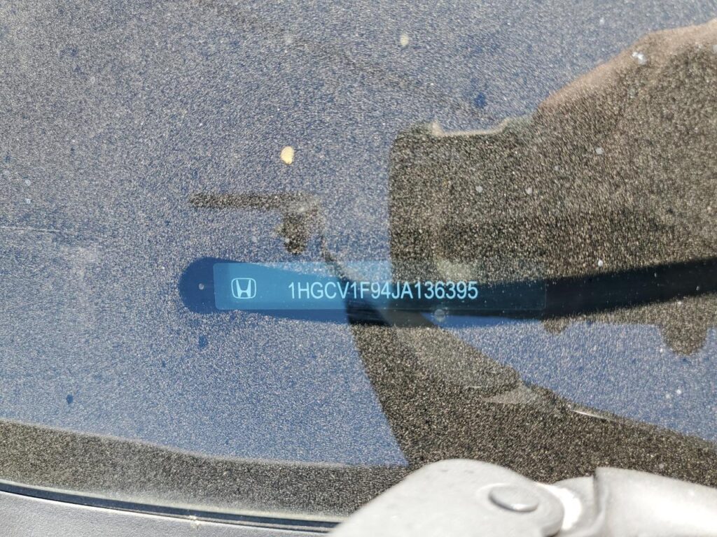 This 2018 Honda Accord (Silver) comes from a major insurance auction in the USA or Canada. All information on this page is linked to the vehicle’s VIN (1HGCV1F94JA136395), which helps confirm where the car was listed and what condition it was in at the time of sale.