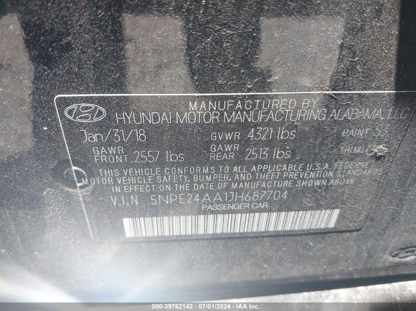 | VIN Number | 5NPE24AA1JH687704 |