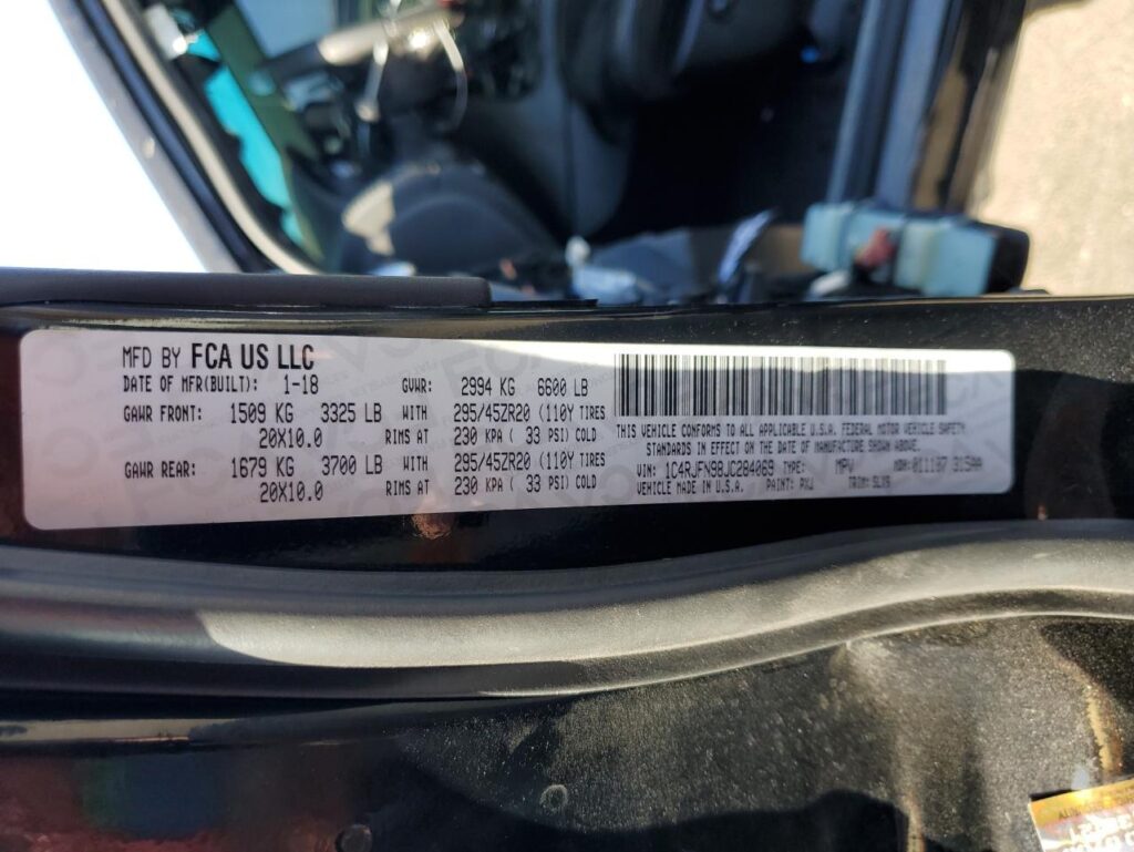 This 2018 JEEP GRAND CHER (BLACK) comes from a major insurance auction in the USA or Canada. All information on this page is linked to the vehicle’s VIN (1C4RJFN98JC284069), which helps confirm where the car was listed and what condition it was in at the time of sale.
