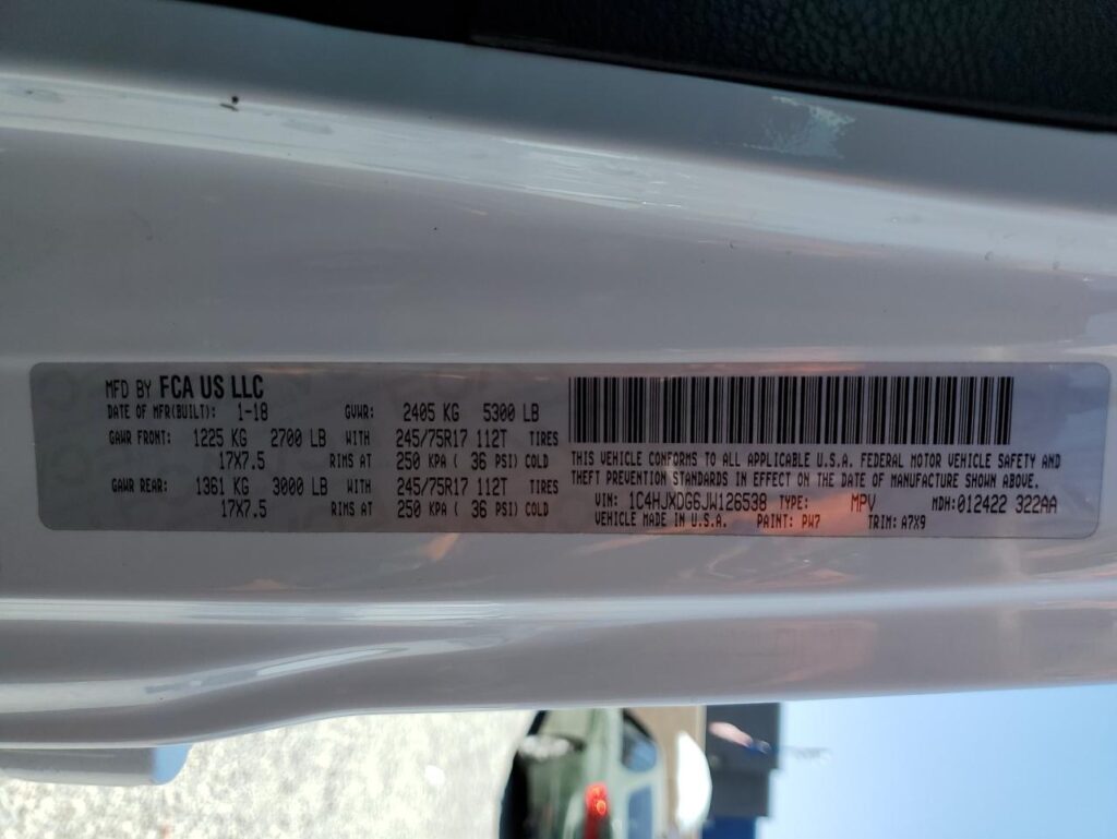 | VIN Number | 1C4HJXDG6JW126538 |