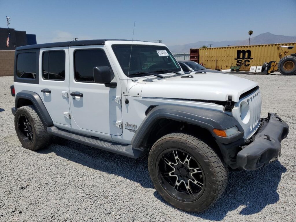 This 2018 JEEP WRANGLER (WHITE) is equipped with an engine designed to balance performance and efficiency. According to the auction listing, the vehicle had 95,872 miles at the time of sale.
