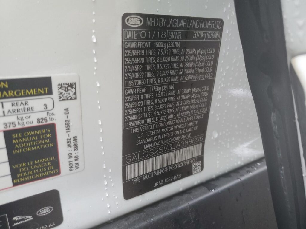 | VIN Number | SALGS2SV3JA388696 |
