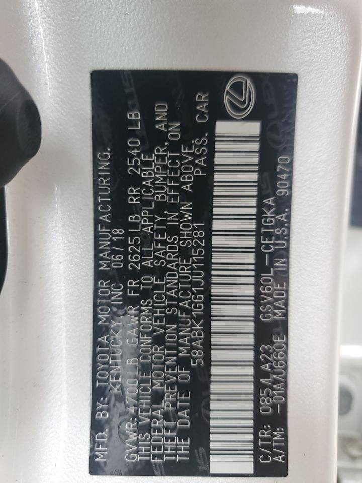 This 2018 Lexus ES 350 (White) comes from a major insurance auction in the USA or Canada. All information on this page is linked to the vehicle’s VIN (58ABK1GG1JU115281), which helps confirm where the car was listed and what condition it was in at the time of sale.