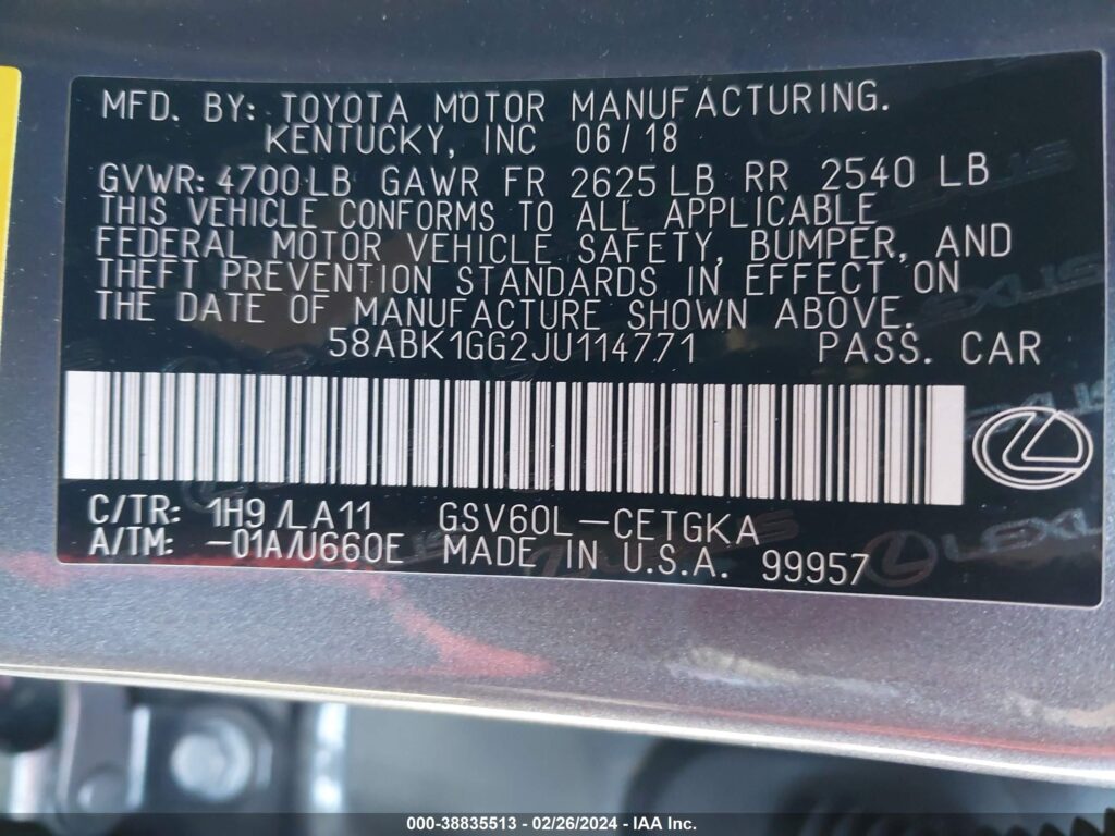 This 2018 Lexus ES 350 (Grey) comes from a major insurance auction in the USA or Canada. All information on this page is linked to the vehicle’s VIN (58ABK1GG2JU114771), which helps confirm where the car was listed and what condition it was in at the time of sale.