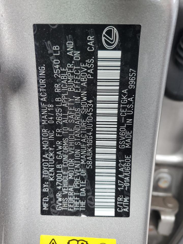 This 2018 Lexus ES 350 (Black) comes from a major insurance auction in the USA or Canada. All information on this page is linked to the vehicle’s VIN (58ABK1GG4JU104534), which helps confirm where the car was listed and what condition it was in at the time of sale.