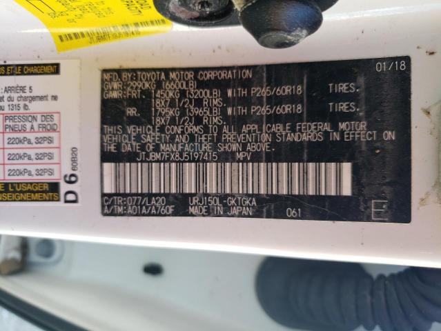 This 2018 Lexus GX (White) comes from a major insurance auction in the USA or Canada. All information on this page is linked to the vehicle’s VIN (JTJBM7FX8J5197415), which helps confirm where the car was listed and what condition it was in at the time of sale.