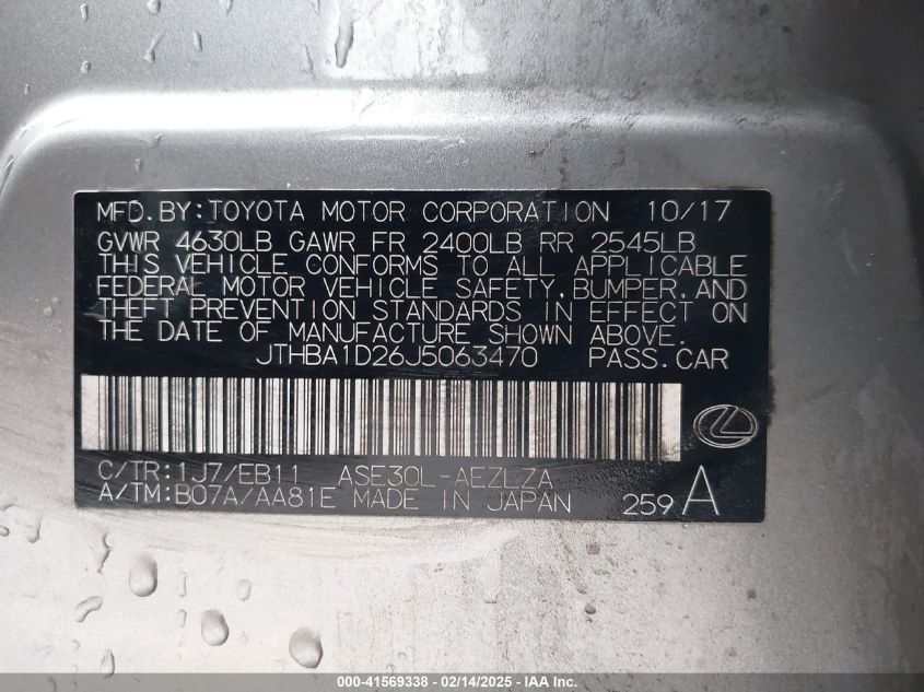 | VIN Number | JTHBA1D26J5063470 |