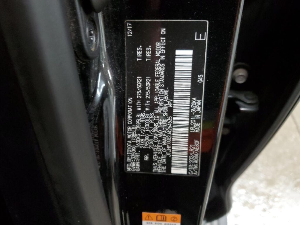 This 2018 Lexus LX 570 (Black) comes from a major insurance auction in the USA or Canada. All information on this page is linked to the vehicle’s VIN (JTJHY7AX2J4264635), which helps confirm where the car was listed and what condition it was in at the time of sale.