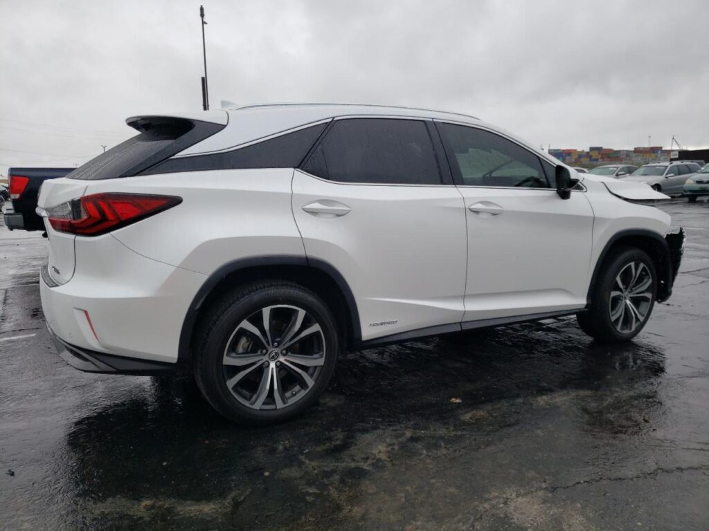 This 2018 Lexus RX 450h (White) is equipped with an engine designed to balance performance and efficiency. According to the auction listing, the vehicle had 35,058 miles at the time of sale.