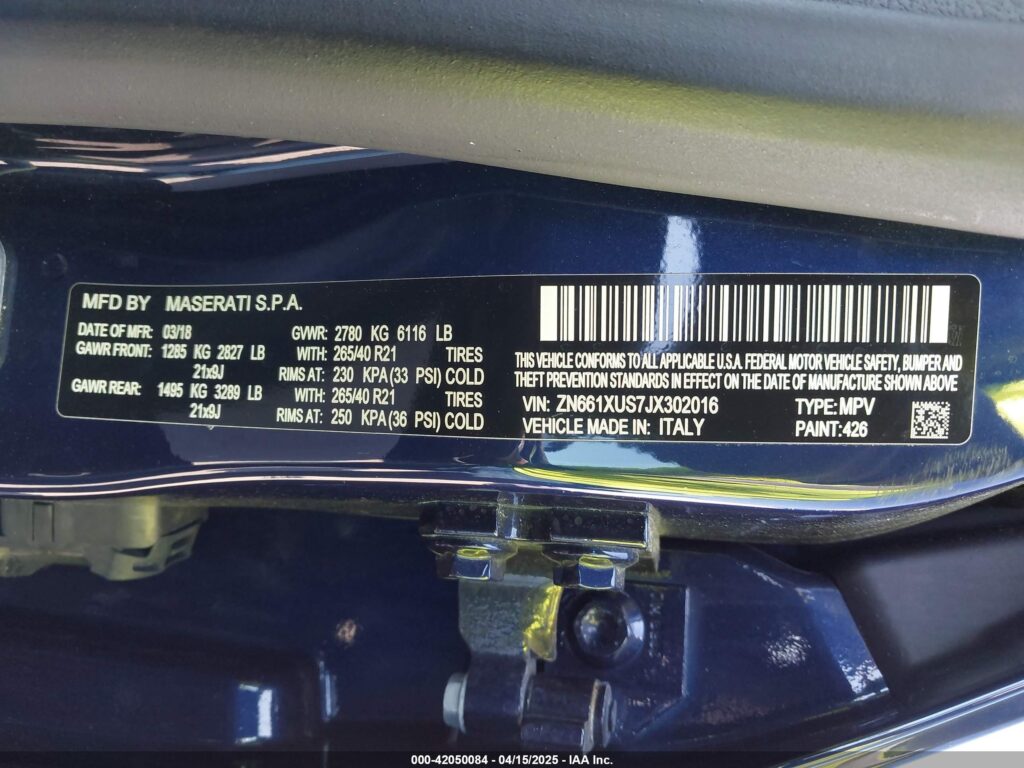This 2018 Maserati Levante (Blue) comes from a major insurance auction in the USA or Canada. All information on this page is linked to the vehicle’s VIN (ZN661XUS7JX302016), which helps confirm where the car was listed and what condition it was in at the time of sale.