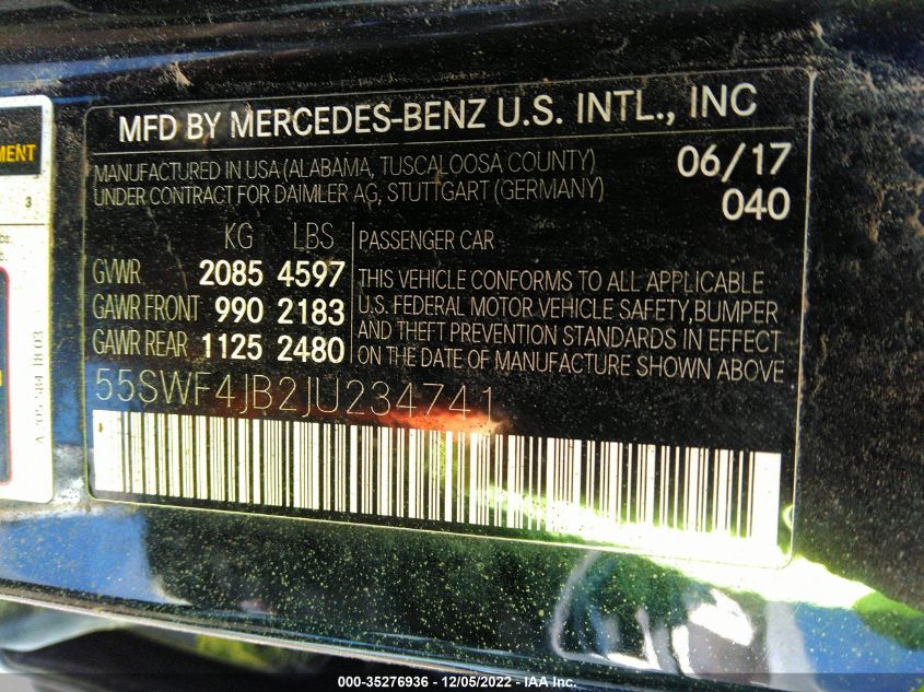 2018 MERCEDES-BENZ C – 55SWF4JB2JU234741