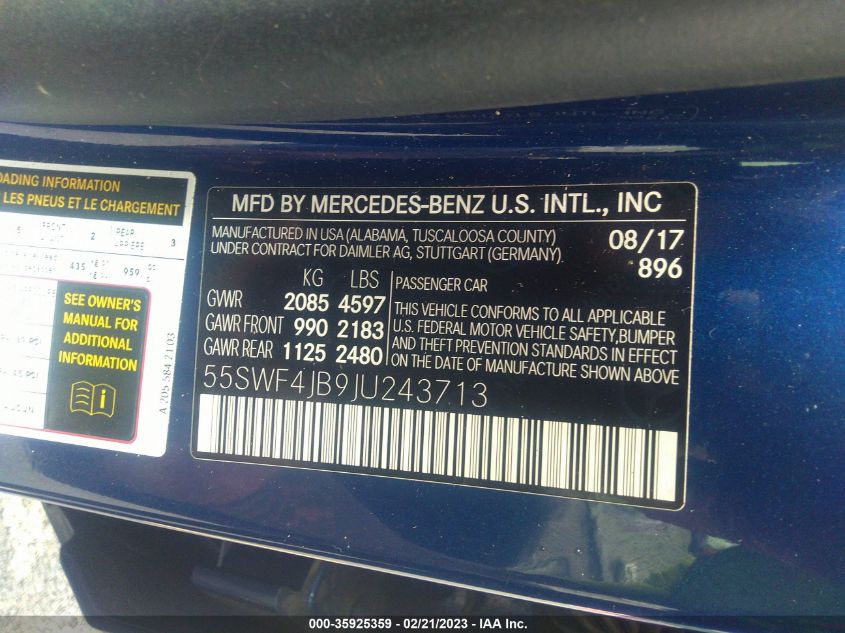 2018 MERCEDES-BENZ C-CLASS – 55SWF4JB9JU243713