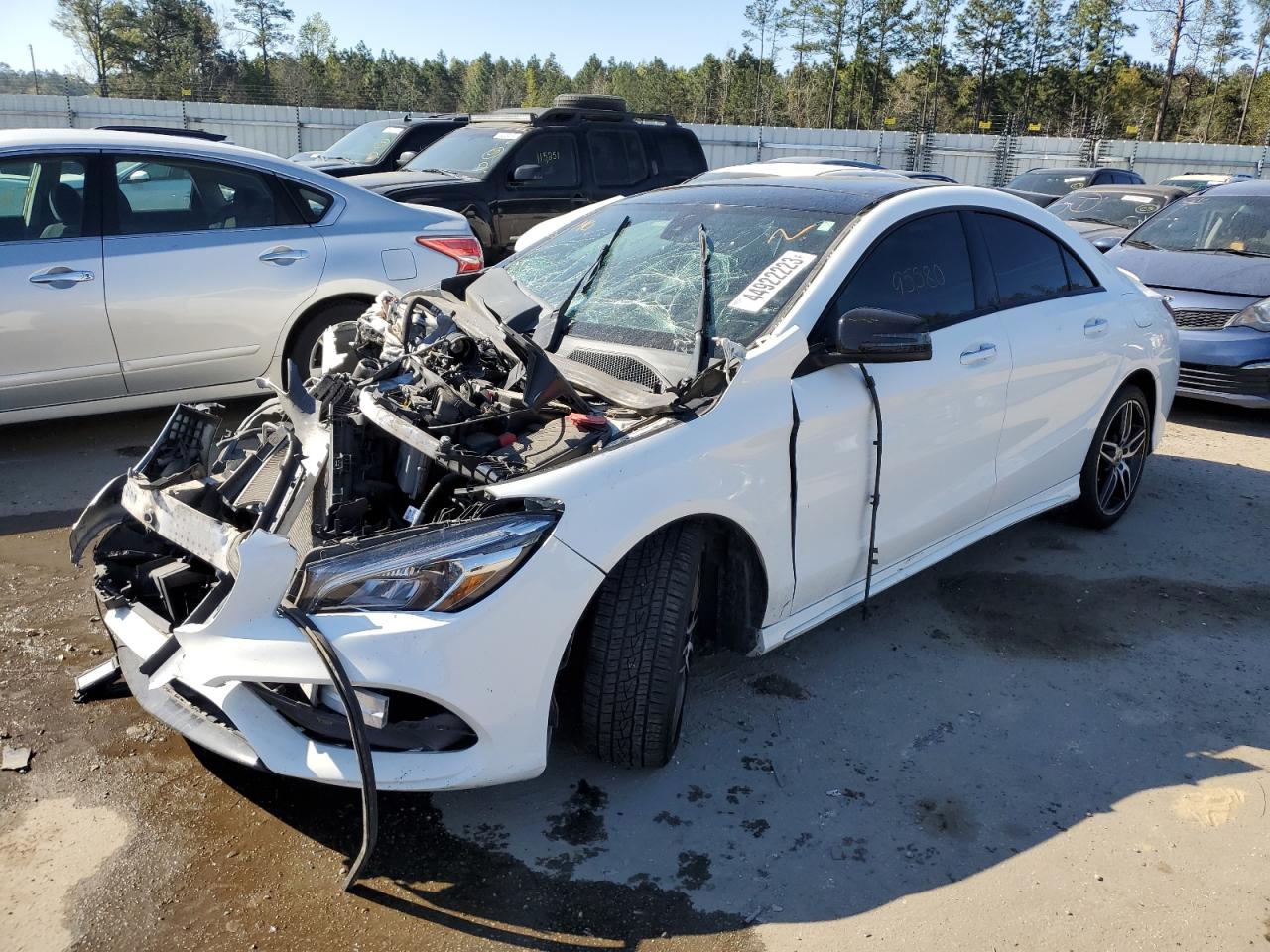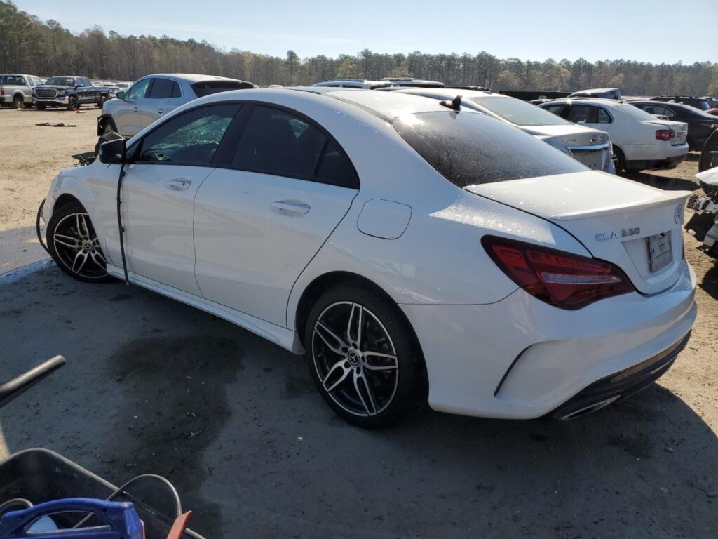 This 2018 MERCEDES-BENZ CLA-CLASS (WHITE) is equipped with an engine designed to balance performance and efficiency. According to the auction listing, the vehicle had 95,580 miles at the time of sale.