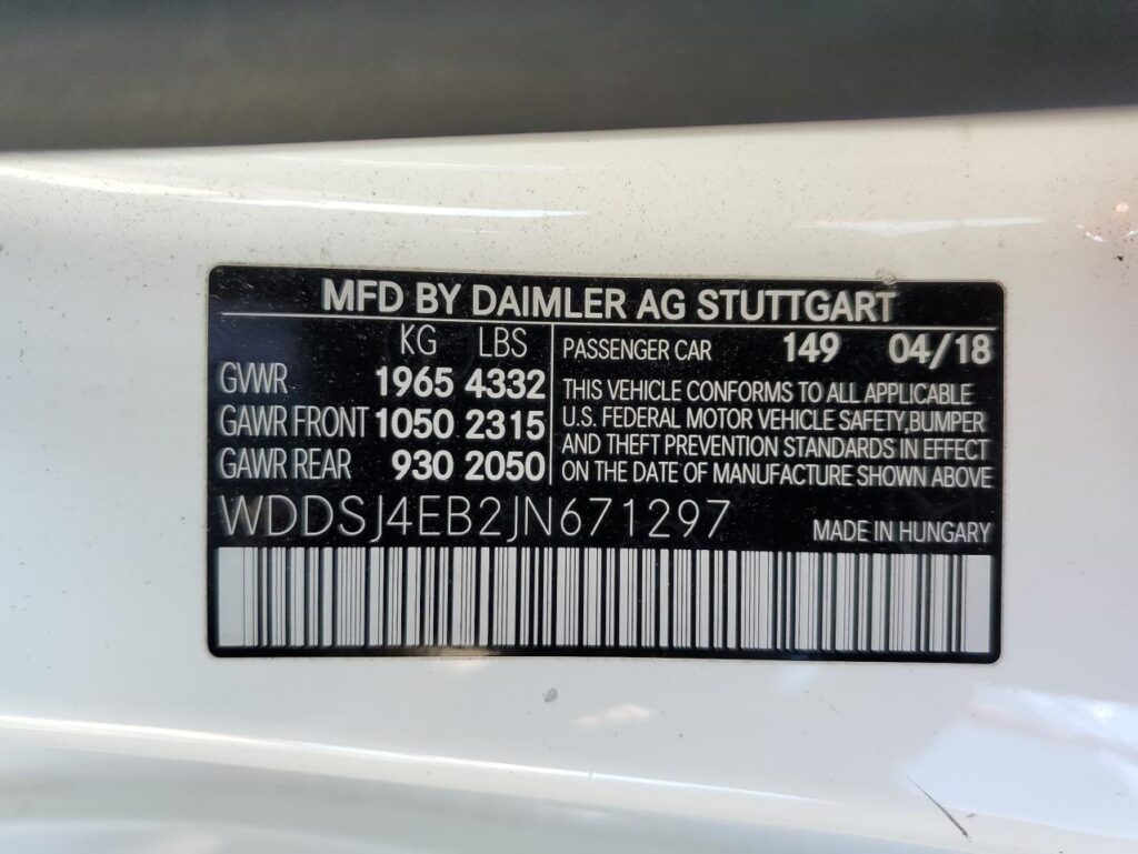 | VIN Number | WDDSJ4EB2JN671297 |