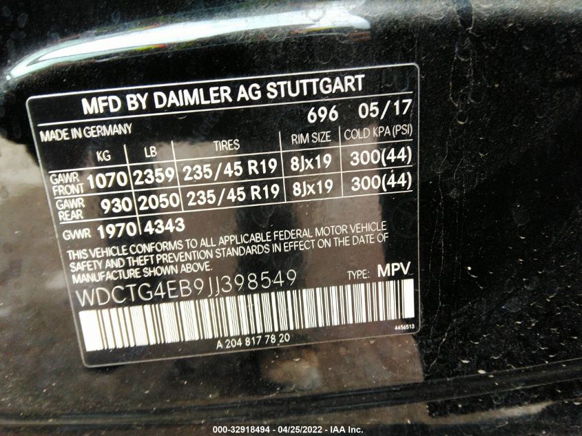 VIN: WDCTG4EB9JJ398549