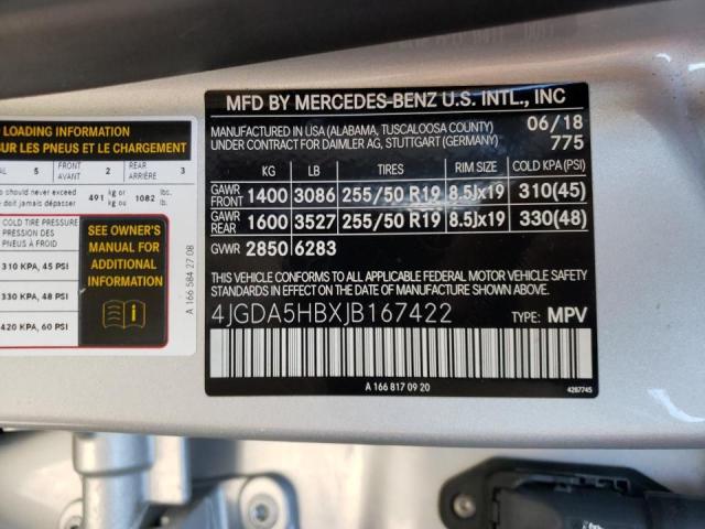 This 2018 Mercedes-Benz GLE-Class (Silver) comes from a major insurance auction in the USA or Canada. All information on this page is linked to the vehicle’s VIN (4JGDA5HBXJB167422), which helps confirm where the car was listed and what condition it was in at the time of sale.
