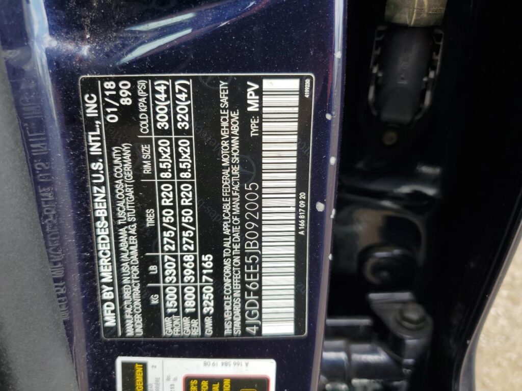 VIN: 4JGDF6EE5JB092005