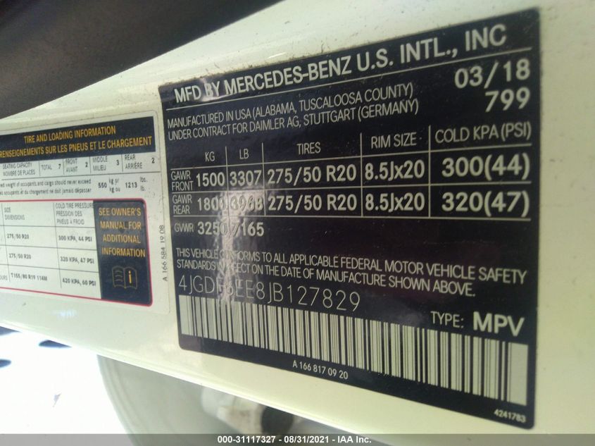 This 2018 Mercedes-Benz GLS-Class (White) comes from a major insurance auction in the USA or Canada. All information on this page is linked to the vehicle’s VIN (4JGDF6EE8JB127829), which helps confirm where the car was listed and what condition it was in at the time of sale.