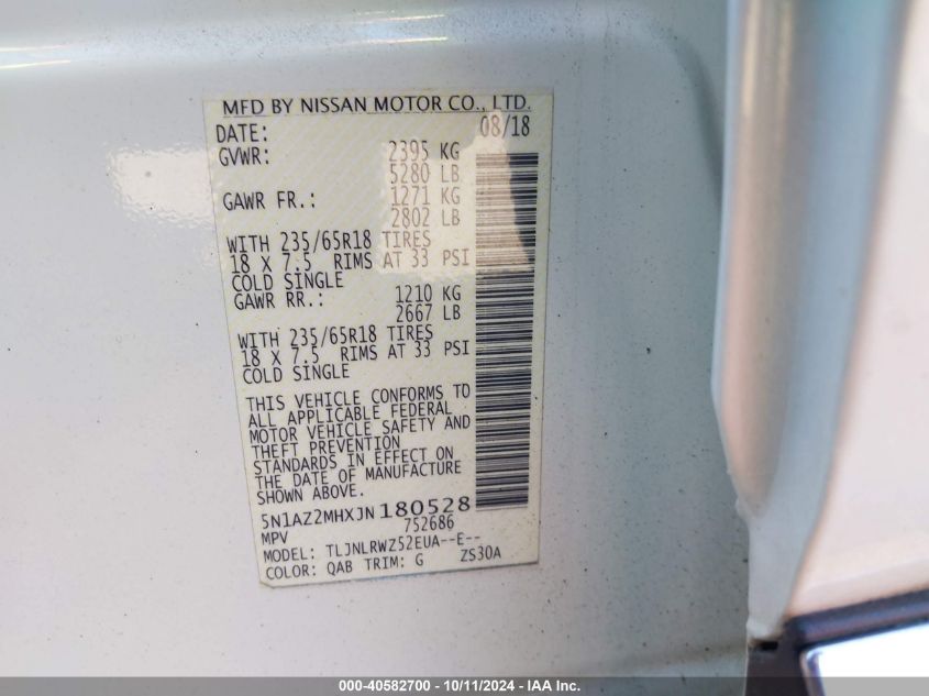 | VIN Number | 5N1AZ2MHXJN180528 |