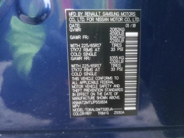 This 2018 Nissan Rogue (Blue) comes from a major insurance auction in the USA or Canada. All information on this page is linked to the vehicle’s VIN (KNMAT2MT1JP551834), which helps confirm where the car was listed and what condition it was in at the time of sale.