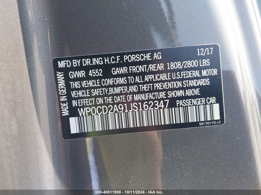 | VIN Number | WP0CD2A91JS162347 |