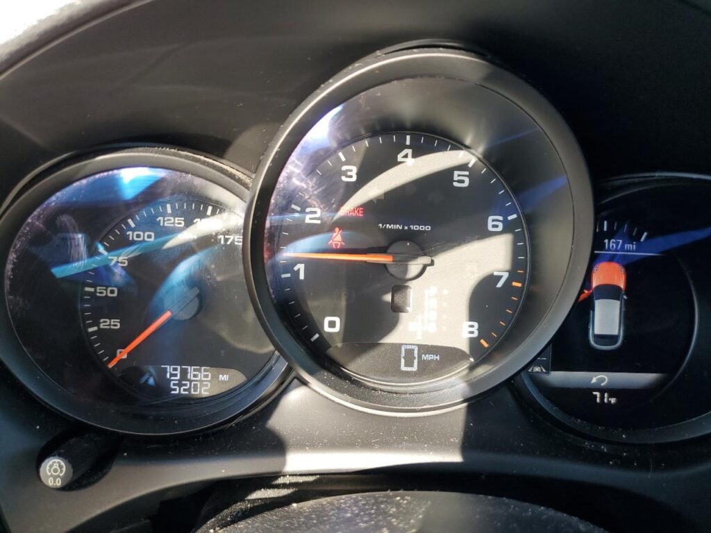 This 2018 Porsche Macan (Charcoal) is equipped with an engine designed to balance performance and efficiency. According to the auction listing, the vehicle had 79,766 miles at the time of sale.