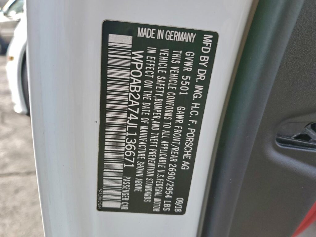 | VIN Number | WP0AB2A74JL136671 |