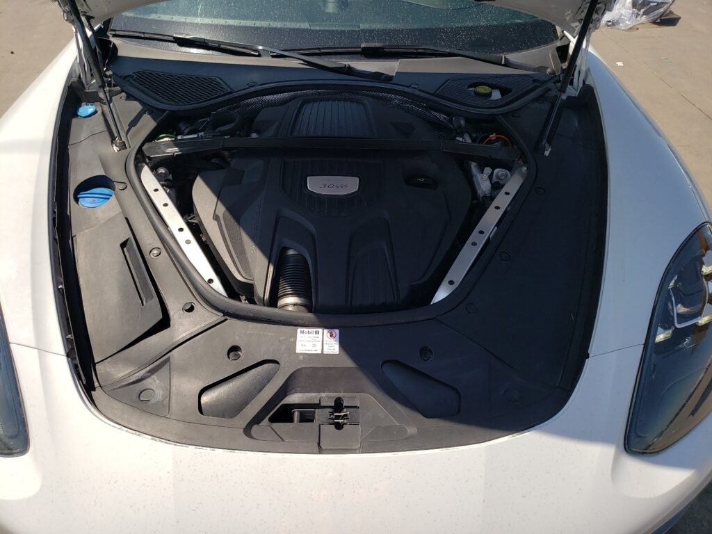 This 2018 Porsche Panamera (White) is equipped with an engine designed to balance performance and efficiency. According to the auction listing, the vehicle had 47,783 miles at the time of sale.