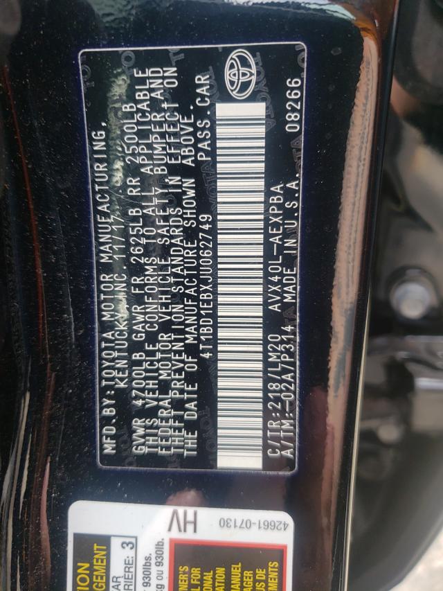 | VIN Number | 4T1BD1EBXJU062749 |